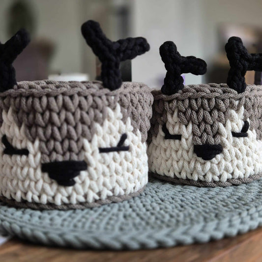 Rentierkorb aus Baumwolle – gehäkelte Weihnachtsdeko