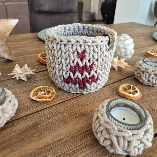 Entdecke handgemachte, saisonale Körbe & Deko aus recycelter Baumwolle – liebevoll gefertigt...